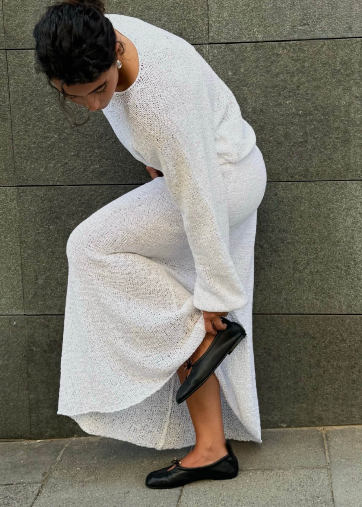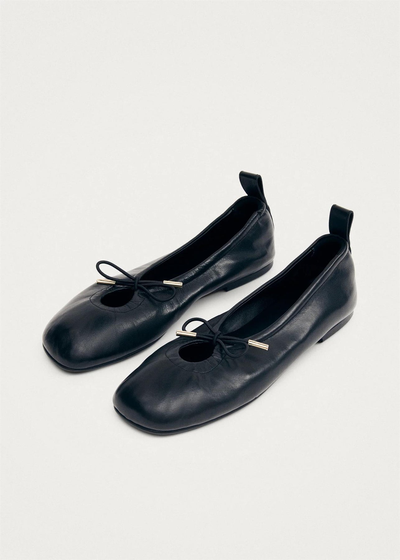 Black leather stretchy ballet flats