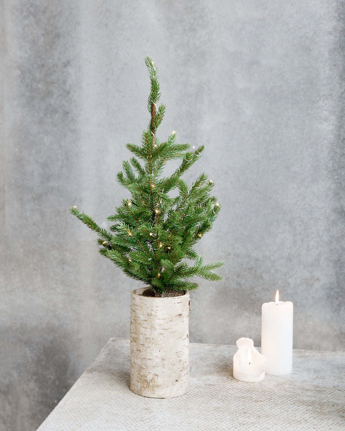 Invite Christmas into your home with this stunning Christmas tree from House Doctor. Its small, fine lights light up any dark winter day. Use the tree to create a warm, cosy atmosphere in your home. Place the tree in your hallway or living room as a nice, welcoming detail in your home. The tree is made of synthetic materials, and you will therefore be able to reuse it again next year. The tree stands tall on a nice birch base with a rustic look. Batteries not included (3 AA batteries are needed). Indoor use only